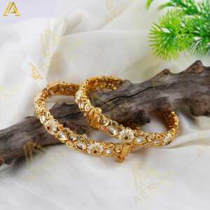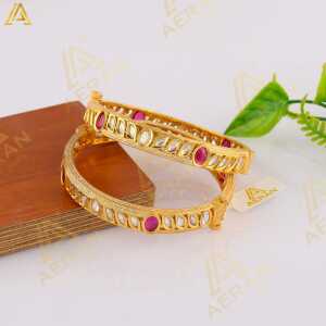 AERAN Traditional KUNDAN Gold Plated Kada Set