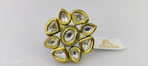Gold Plated White Kundan Stone Ethnic Kundan  Finger Ring For Women