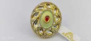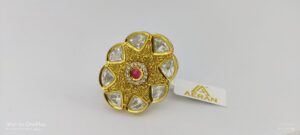 “Royal Heritage Kundan Ring – Red & White Design” “Rajwada Round Kundan Ring”