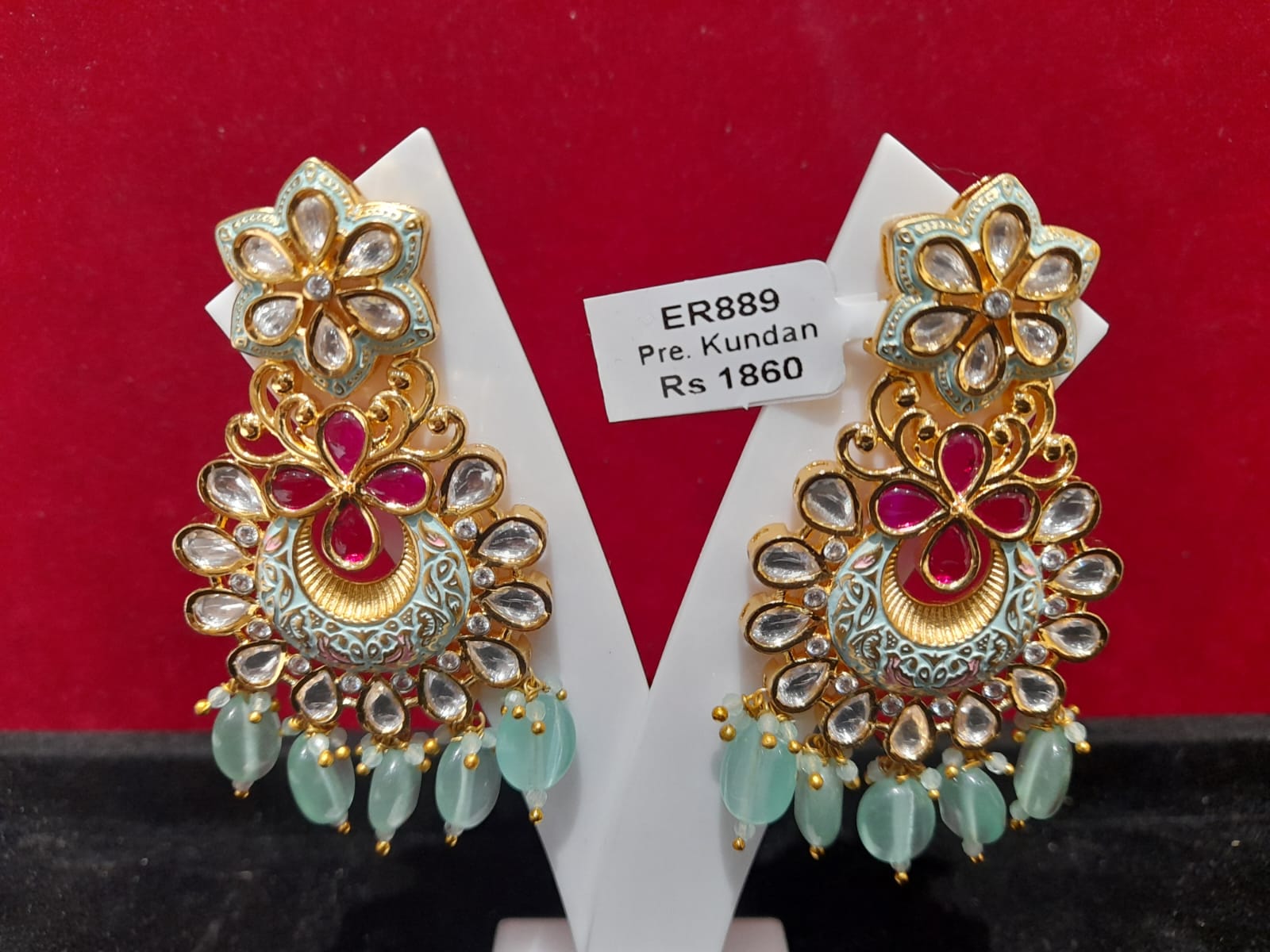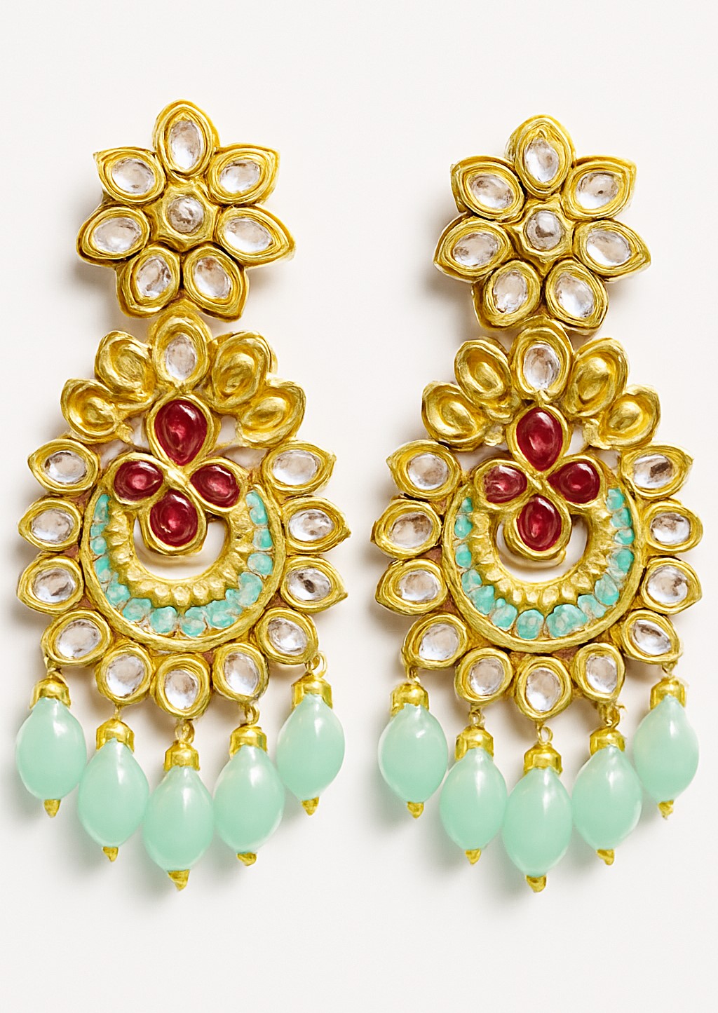 Mint Kundan Chandbali/ AERAN Jewelry/ Indian Wedding Earrings/ Kundan Pearl Jewelry/ Bahubali/ Polki Chandbali Earring