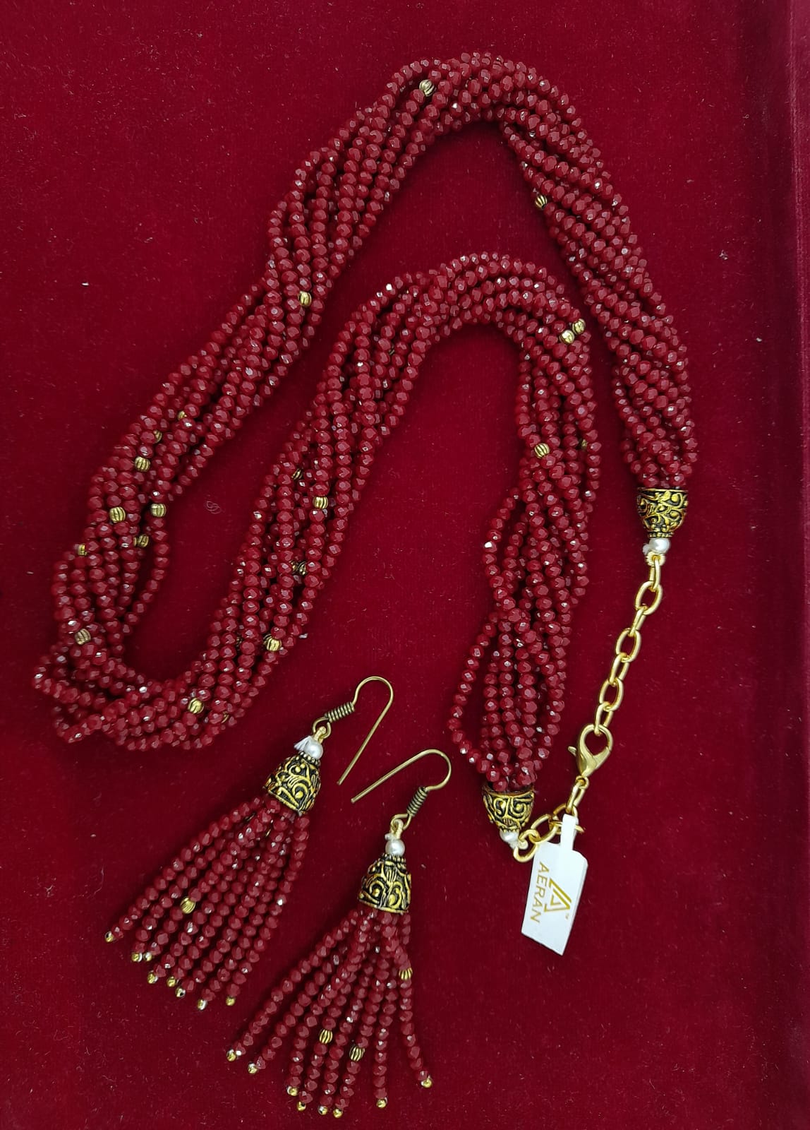 Name :Multi Layer Red COLOR CRYSTAL MALA Necklace Set For Women And Girls