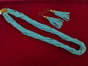 Name : Multilayered FIROZI COLOR CRYSTAL MALA Beads Necklace