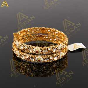 Elevate your ethnic style with these exquisite Traditional Gold Plated Kundan Bangles adorned with sparkling ruby stones. Meticulously handcrafted, these bangles showcase timeless Kundan work set in a luxurious gold finish, perfect for festive occasions, weddings, and celebrations. The combination of classic Kundan stones and vibrant red rubies adds a royal charm, making them an ideal addition to your jewelry collection. Pair them with your favorite ethnic attire for a statement look.